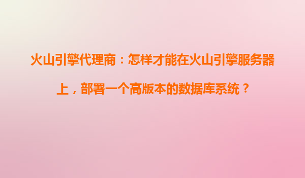 火山引擎代理商:如何在火山引擎服务器上部署高版本数据库系统