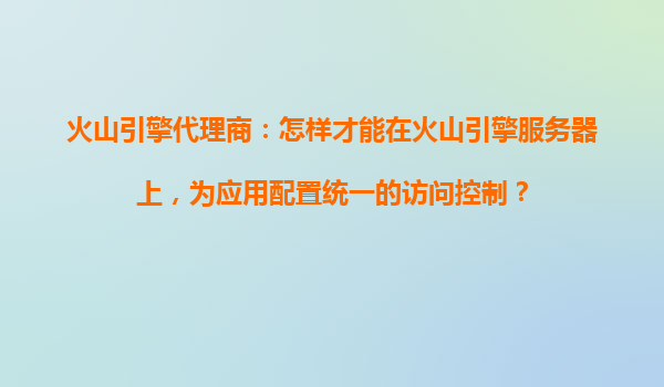 火山引擎代理商指南:如何为应用配置统一的访问控制