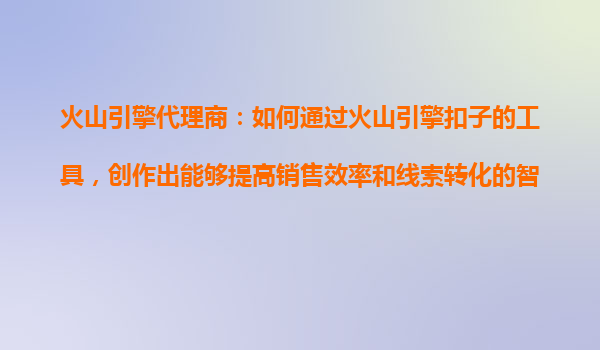火山引擎代理商:如何通过火山引擎扣子的工具,创作出能够提高销售效率和线索转化的智能体?