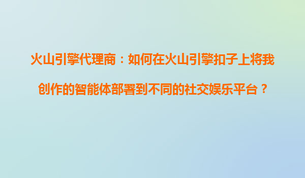 火山引擎代理商:如何将智能体部署到不同社交娱乐平台的全流程指南