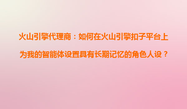 火山引擎代理商指南:打造具有长期记忆的智能体角色人设