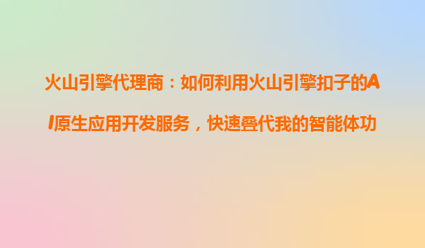 火山引擎代理商:如何利用火山引擎扣子的AI原生应用开发服务,快速迭代我的智能体功能?