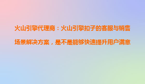火山引擎代理商:火山引擎扣子的客服与销售场景解决方案,如何快速提升用户满意度?