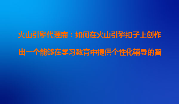 火山引擎代理商:如何在火山引擎扣子上创作出一个能够在学习教育中提供个性化辅导的智能体?