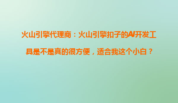 火山引擎代理商:火山引擎扣子的AI开发工具真的很方便,适合小白吗?
