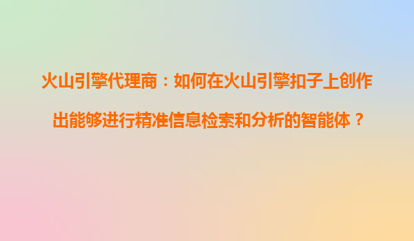 火山引擎代理商:如何在扣子上打造精准信息检索与分析型智能体