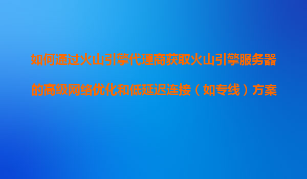 如何通过火山引擎代理商获取高级网络优化与低延迟连接方案