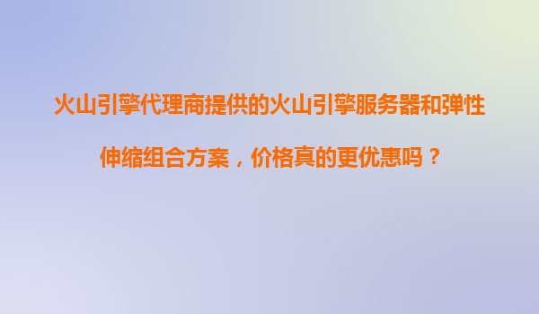火山引擎代理商提供的服务器与弹性伸缩组合方案,价格真的更优惠吗?