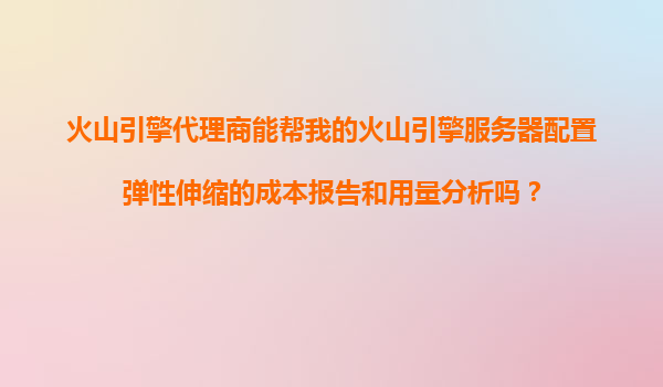 火山引擎代理商如何助力企业优化弹性伸缩成本