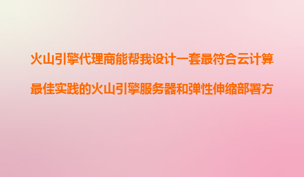 火山引擎代理商能帮我设计一套最符合云计算最佳实践的火山引擎服务器和弹性伸缩部署方案吗?