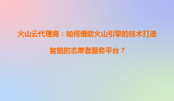 火山云代理商:如何借助火山引擎的技术打造智能志愿者服务平台?