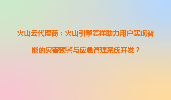 火山云代理商:火山引擎怎样助力用户实现智能的灾害预警与应急管理系统开发?