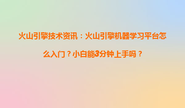 火山引擎机器学习平台入门指南:小白3分钟快速上手