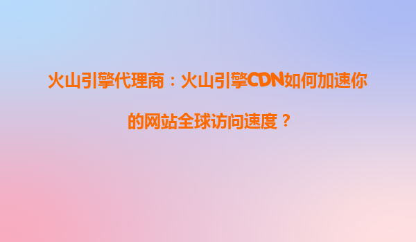 火山引擎cdn如何加速你的网站全球访问速度?