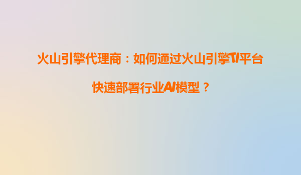 火山引擎TI平台:赋能行业AI模型快速部署的核心利器