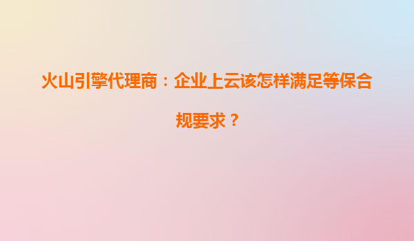 火山引擎代理商:企业上云如何满足等保合规要求?