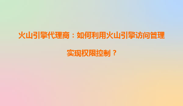 火山引擎代理商:如何利用火山引擎访问管理实现权限控制?