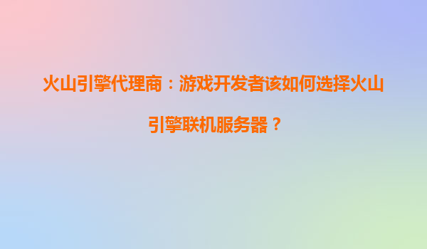 游戏开发者如何选择火山引擎联机服务器?从核心需求到技术优势全解析