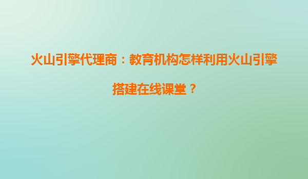 火山引擎代理商:教育机构如何高效搭建在线课堂?