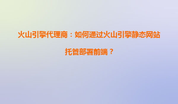 火山引擎代理商指南:如何通过火山引擎静态网站托管高效部署前端项目