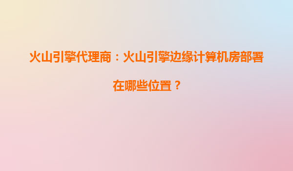 火山引擎边缘计算机房全球部署布局