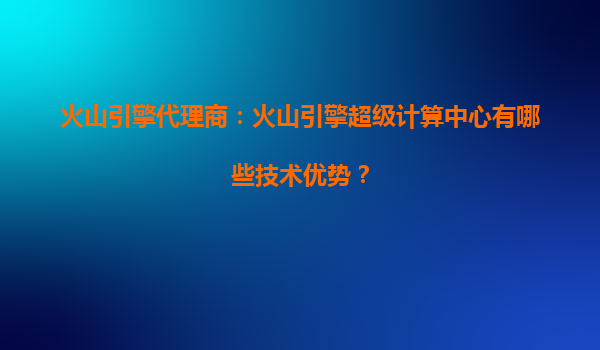 火山引擎超级计算中心的技术优势及其代理商的协同价值