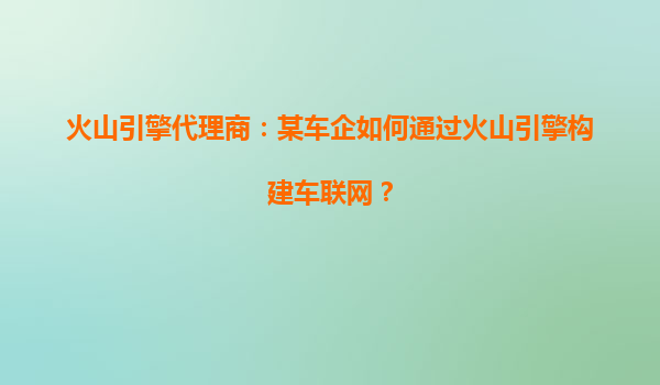 某车企如何通过火山引擎代理商构建高效车联网系统?