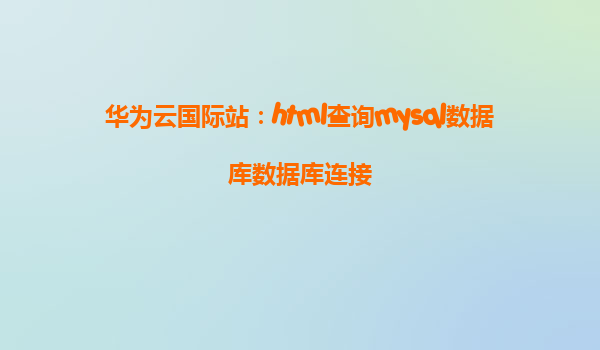 2026-01-01华为云国际站:HTML查询MySQL数据库连接全指南 一、引言:华为云与MySQL数据库的协同优势 华为云国际站为企业提供了稳定高效的云数据库服务,其中MySQL作为主流关系型数据库,与华为云弹性云服务器(E...