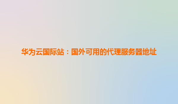 2025-04-22华为云国际站:国外可用的代理服务器地址 在全球化互联网环境下,数据传输的速度与安全性是企业和开发者尤为关注的问题。华为云凭借其全球化的布局和先进的技术体系,提供了高效、安全、可靠的云计算服务,尤其是在...