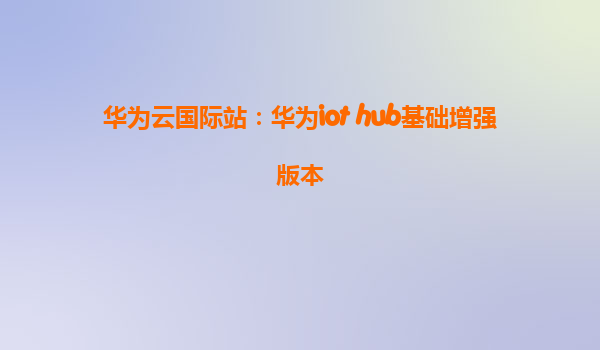 2025-04-20华为云国际站:华为IoTHub基础增强版本 1.引言 随着物联网(IoT)技术的不断发展,越来越多的企业和开发者开始寻求更加灵活、稳定、高效的物联网解决方案。华为云作为全球领先的云服务提供商,凭借其强大的技术能...