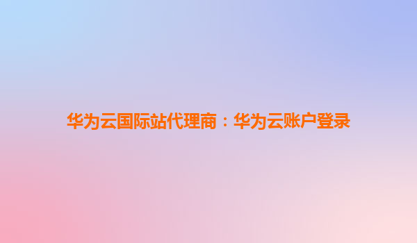 华为云国际站代理商:华为云账户登录 引言 随着云计算技术的快速发展,越来越多的企业开始选择云服务来提升自身的竞争力。华为云作为全球领先的云服务提供商,其国际站代理商服...