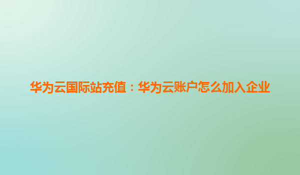 2025-04-07以华为云国际站充值:华为云账户怎么加入企业 引言 在全球化的今天,越来越多的企业选择通过云服务来提升自身的竞争力。华为云作为全球领先的云服务提供商,以其卓越的技术和服务赢得了众多企业的青睐。本...