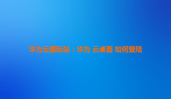 2025-04-04如何登录华为云桌面 华为云桌面是华为云提供的一种虚拟桌面服务,允许用户通过互联网在任何地点访问自己的桌面环境。本文将详细介绍如何登录华为云桌面,并探讨华为云的优势。 登录前的准备 在登录华为...