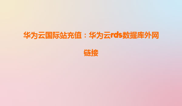 2025-04-04华为云国际站充值与华为云RDS数据库外网链接 华为云国际站充值简介 华为云国际站提供了便捷的充值方式,支持多种支付方式,包括信用卡、PayPal等,确保用户在全球任何地方都能轻松充值,享受华为云服务。这...
