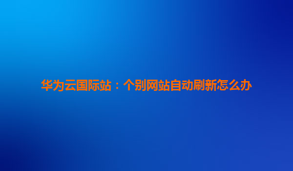 2025-04-02华为云国际站:个别网站自动刷新怎么办 在现代互联网应用中,自动刷新功能是很多网站都会使用的特性,尤其在实时数据更新、在线客服、新闻网站等场景下。然而,在一些情况下,网站的自动刷新可能会给用户带来困扰,...