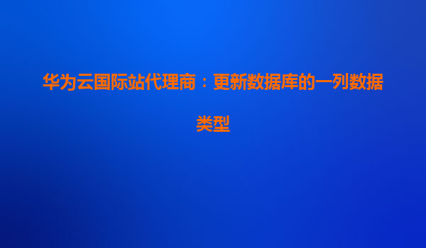 2025-04-01华为云国际站代理商:更新数据库的一列数据类型 在云计算技术的飞速发展下,企业对于云数据库的需求愈加强烈,特别是在数据存储和管理方面,云服务提供商不断提升自己的技术水平。作为全球领先的云服务平台之一,华...