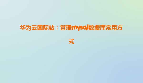 2025-03-31华为云国际站:管理MySQL数据库常用方式 在现代企业的数字化转型过程中,数据库作为信息存储与管理的核心,扮演着至关重要的角色。MySQL作为全球最受欢迎的开源关系型数据库之一,广泛应用于各行各业。在云计算的背...