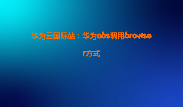 2025-03-30华为云国际站:华为OBS调用Browser方式 随着云计算技术的飞速发展,企业在存储、计算、网络等多方面的需求日益增长,华为云凭借其强大的技术优势、全球化布局以及丰富的产品生态,成为了许多企业云服务的首选平台。...