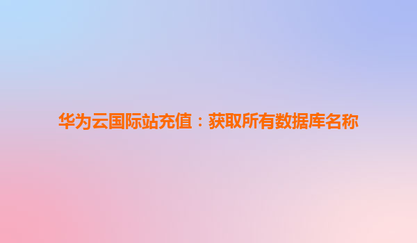 华为云国际站充值:获取所有数据库名称 随着云计算技术的迅猛发展,越来越多的企业开始采用云平台来部署和管理他们的数据和应用。华为云作为全球领先的云服务提供商之一,凭借其强大的技术实力和全球化布局,为各类...