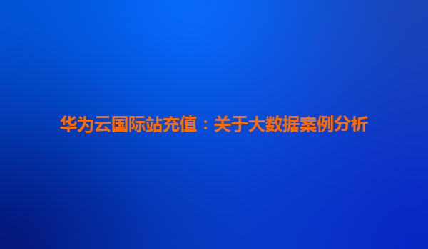 华为云国际站充值:关于大数据案例分析 随着大数据技术的飞速发展,全球各行各业都在加速数字化转型。而在这个转型过程中,云计算作为重要的基础设施,正逐渐成为推动大数据应用的重要引擎。华为云作...