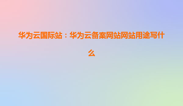 2025-03-27华为云国际站:华为云备案网站用途写什么 在进行网站备案时,很多企业和个人用户都会面临一个问题,那就是如何正确填写“网站用途”这一项内容。华为云作为全球领先的云计算服务提供商,提供的云服务器产品和服务在...