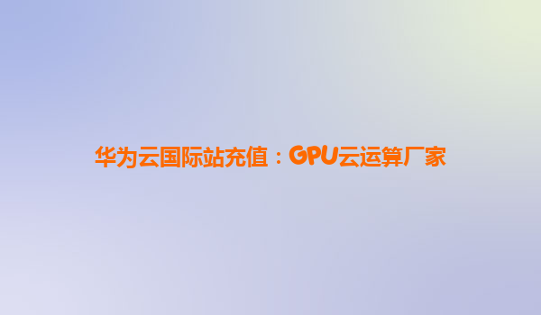 2025-03-25华为云国际站充值:GPU云运算厂家 随着人工智能、大数据和深度学习技术的快速发展,云计算已成为现代企业和开发者的必备工具。华为云作为国内领先的云计算服务提供商,凭借其强大的技术实力、广泛的服务网络以及不...