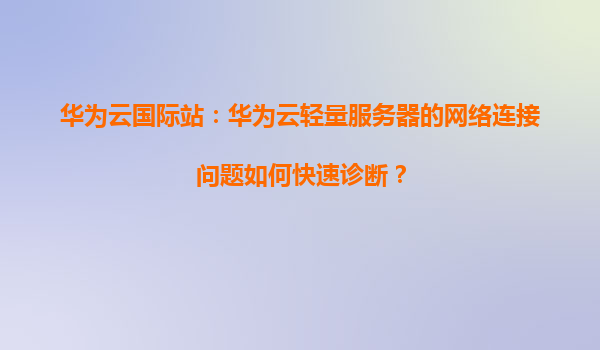 2026-01-09华为云国际站:华为云轻量服务器的网络连接问题如何快速诊断? 一、引言 在使用华为云轻量服务器时,网络连接问题是用户可能遇到的常见挑战之一。无论是企业用户还是个人开发者,快速诊断并解决网络问题对...