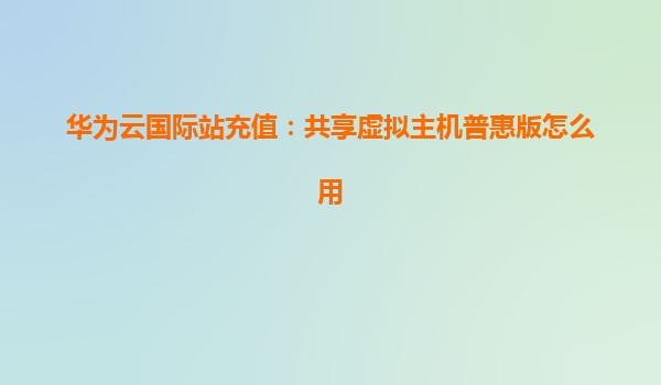 好的,我会为你写一篇关于“华为云国际站充值:共享虚拟主机普惠版怎么用”的文章,并按照要求的格式生成HTML代码。以下是文章内容: 华为云国际站充值:共享虚拟主机普惠版怎么用 随着云计算技术的快速发展...