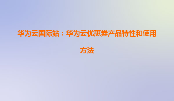 华为云国际站:华为云优惠券产品特性和使用方法 随着云计算技术的迅猛发展,越来越多的企业和开发者选择将其业务迁移至云平台,华为云凭借其强大的技术背景和全球化的服务优势,成为了不少企业的首选...