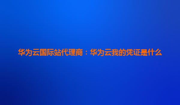 2025-03-22华为云国际站代理商:华为云我的凭证是什么 作为全球领先的信息与通信技术(ICT)解决方案提供商,华为云通过其国际站为各行各业的用户提供强大的云服务。对于华为云国际站代理商而言,获取并管理凭证是顺利开展业...