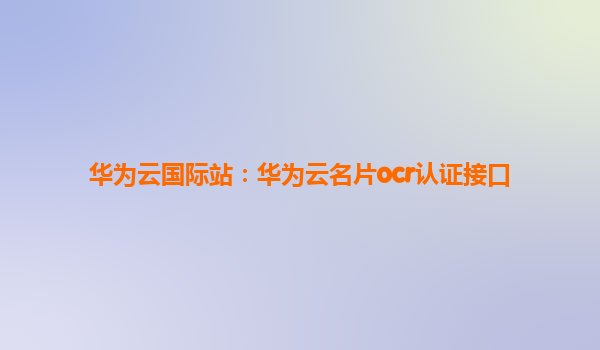 2025-03-21华为云国际站:华为云名片OCR认证接口 随着人工智能和大数据技术的迅猛发展,OCR(OpticalCharacterRecognition,光学字符识别)技术已经逐渐应用到各行各业,特别是在智能办公和数字化转型领域中。华为云作为全...