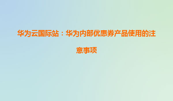 2025-12-30华为云国际站:华为内部优惠券产品使用的注意事项 随着云计算技术的快速发展,华为云作为全球领先的云服务提供商,凭借其强大的技术实力和全球化布局,赢得了众多企业和开发者的青睐。为了回馈用户,华为云国际...