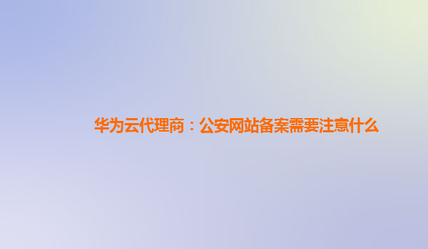 华为云代理商:公安网站备案需要注意什么 随着互联网的迅猛发展,越来越多的企业和个人都选择在网上建立自己的业务平台和服务,而这些网站要合法运营,必须完成相关的备案手续。在中国,公安网站备案是一个不可忽视...
