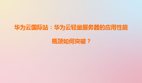 2026-01-09华为云国际站:华为云轻量服务器的应用性能瓶颈如何突破? 引言 在云计算时代,轻量服务器因其灵活性和高性价比成为中小企业和开发者的首选。然而,随着业务增长,应用性能瓶颈问题逐渐显现。如何突破这些...